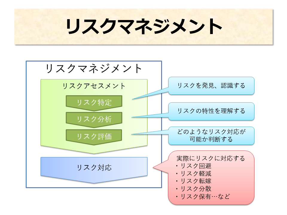 リスク対応とは、リスクマネジメントにおける活動のひとつです。