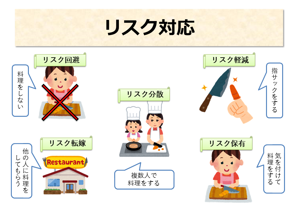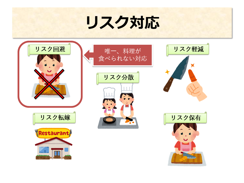 今回の場合は「気を付けて料理をする」という対応になります。 |