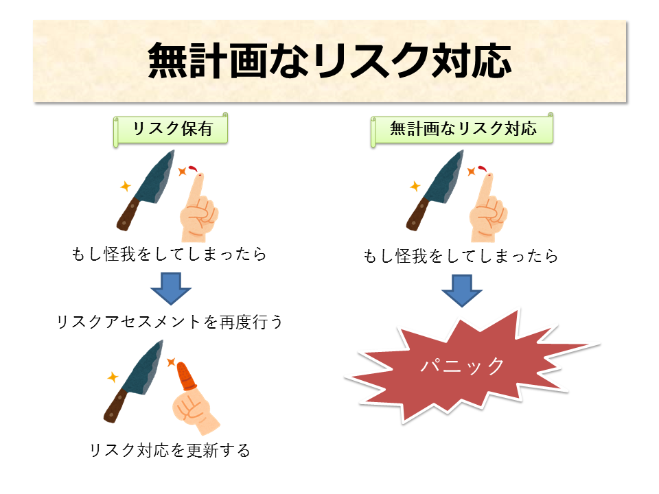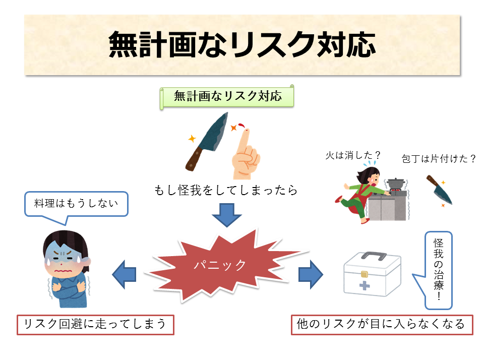 - 無計画なリスク対応はパニックを誘発し、その後の更なる損失を生む。