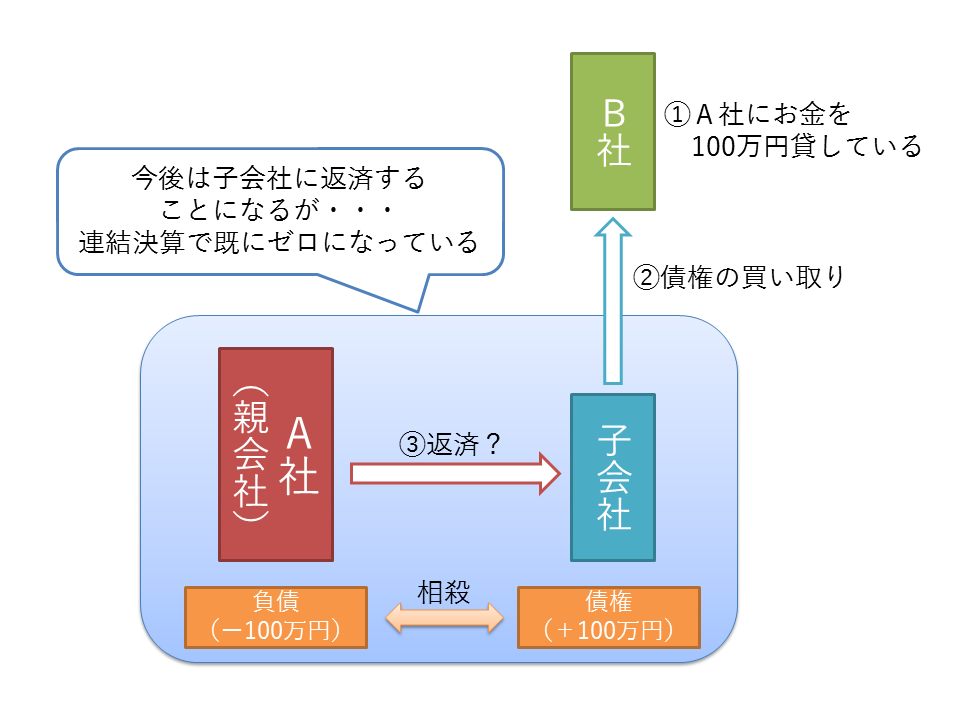 - 親会社と子会社の間での貸し借りは、連結決算で相殺される。