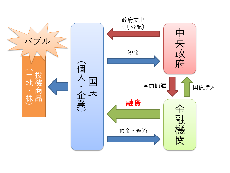 お金を「借りて・使う」ことで経済循環を生み出す経済モデルです。