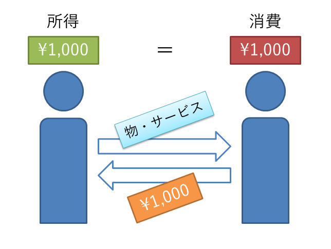 - 国民経済においては「誰かの支出は、誰かの所得」。