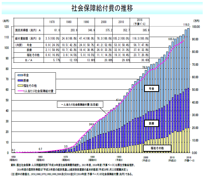 - 高齢化の進んでいる日本では、社会保障費が増加していたため、