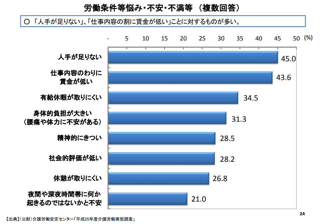 - 賃金が低いため離職率が高く、人手不足になっている。