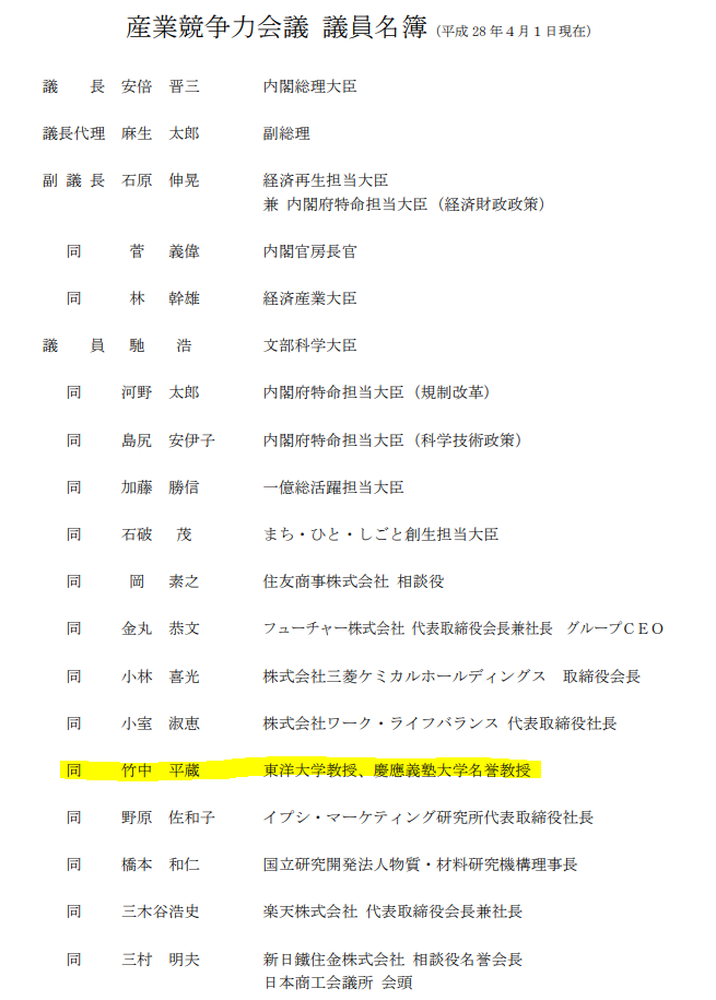 そういえば、ここの会社の取締役会長ってさ、産業競争力会議のメンバーじゃなかった?