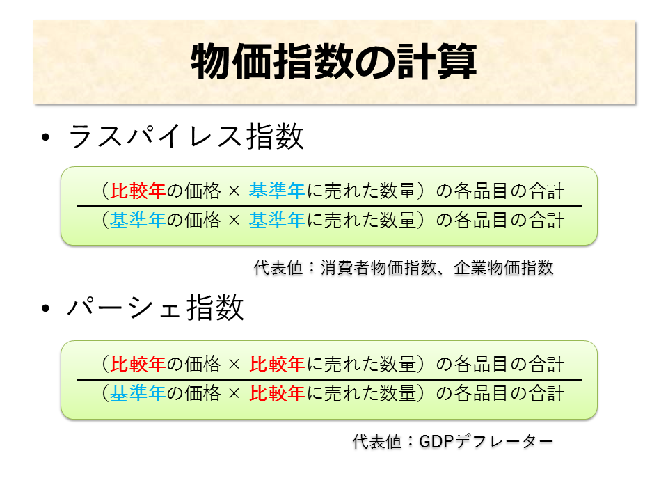 要するに、後述の GDPデフレーターとは計算方法が異なる、ということです。