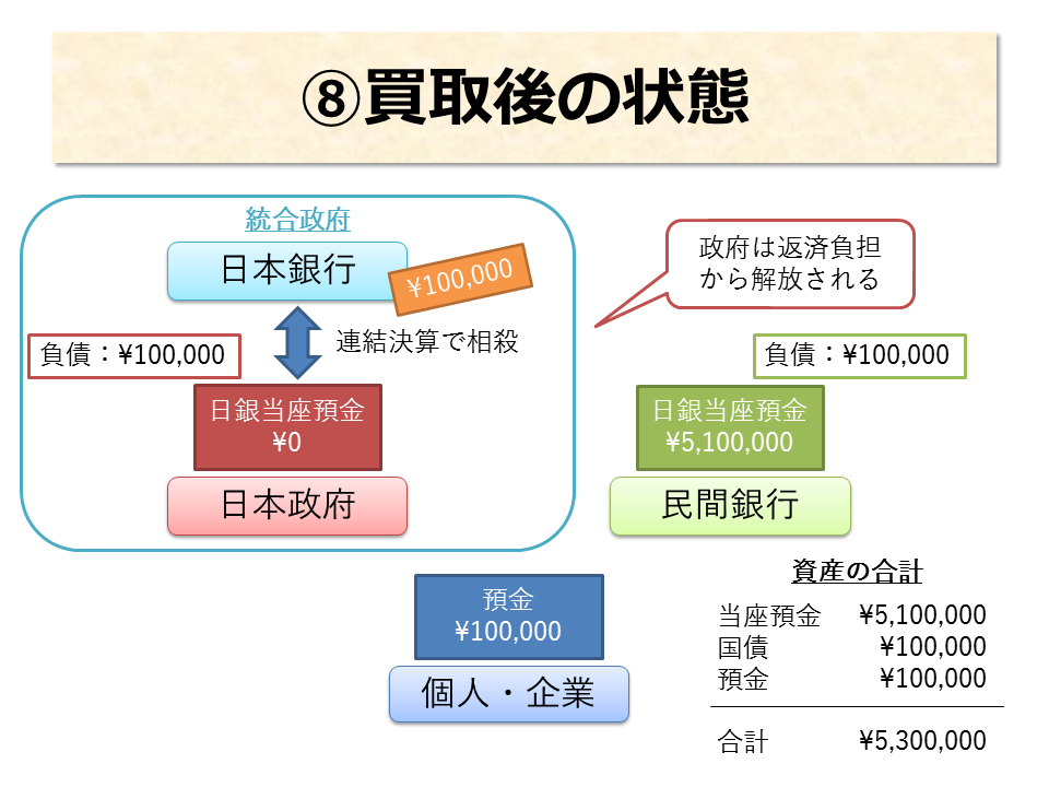 日本銀行が買い取ってしまえば、以下の状態になります。