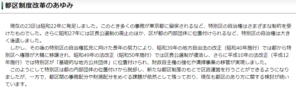 23区は自治権を取り戻すための戦いを延々と続けています。