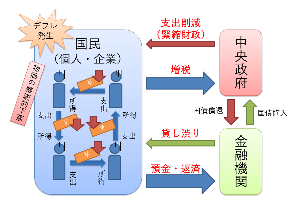 デフレスパイラルが加速して、余計に経済を悪化させます。