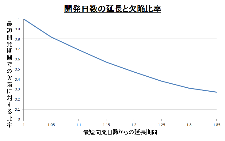 開発期間を 20% 延ばすと欠陥数は半分に減る